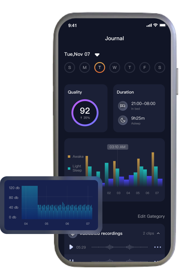 Bestsleep accurately tracks your movement and breathing, enabling advanced estimation of: